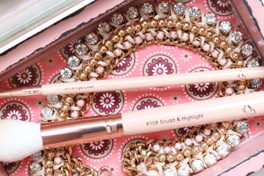 I was very lucky to be given these brushes to review. I really liked the look of them (hello rose gold) and asked if there was a chance I could review them, and the lovely team from Studio Beau were generous enough to send me two of their collection to review! I was given the Sculpting Brush and the Eyeliner Brush, which arrived in pretty pink tissue paper and a lovely note.